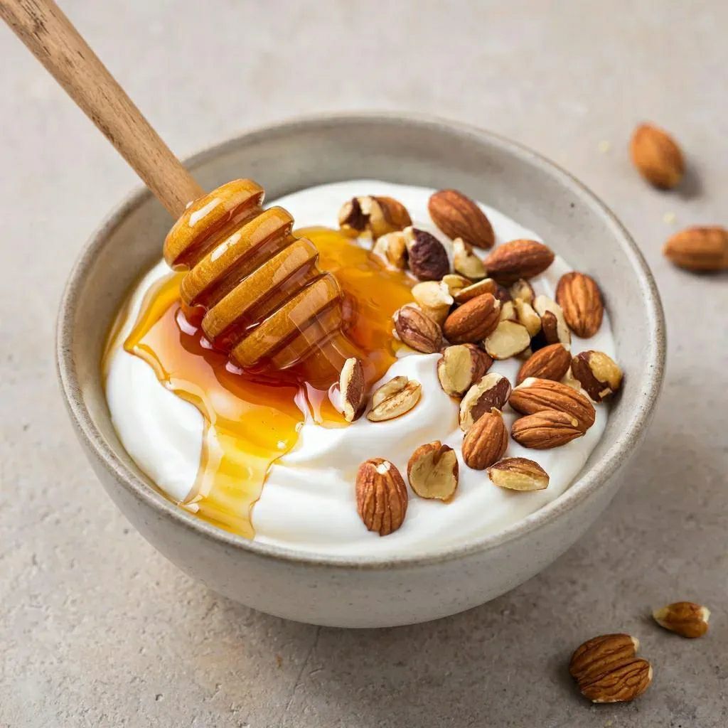 1. Смешайте йогурт с медом и добавьте орехи сверху.