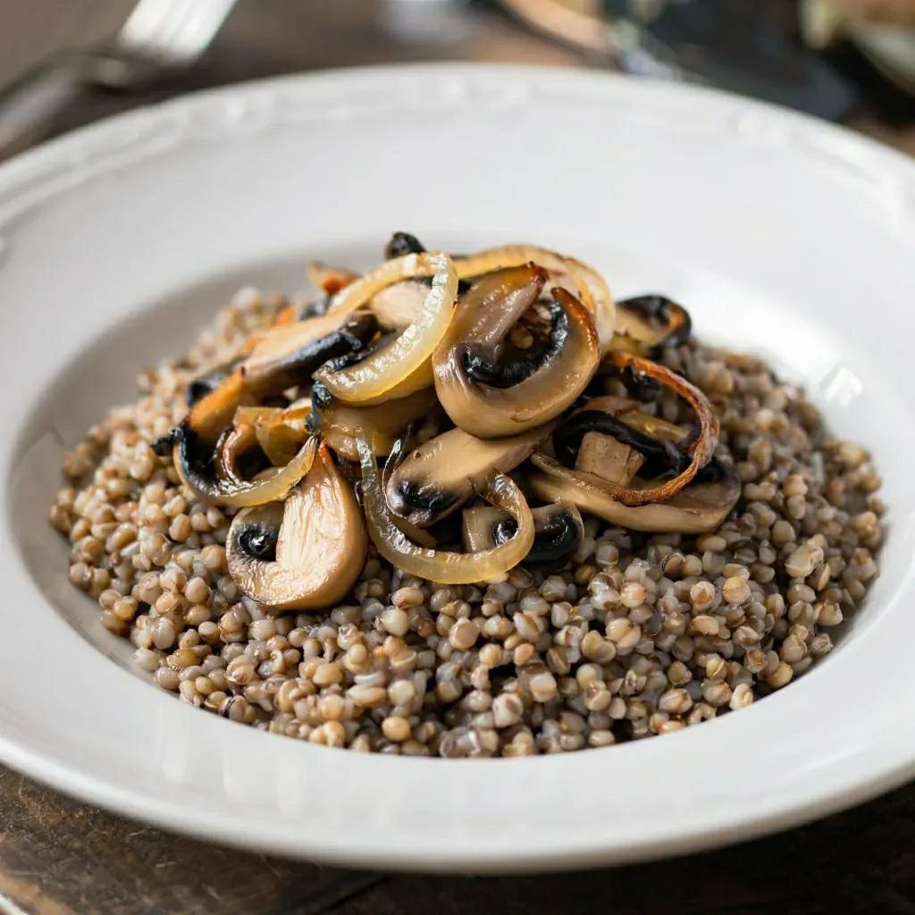 3. Смешайте грибы с гречкой.
