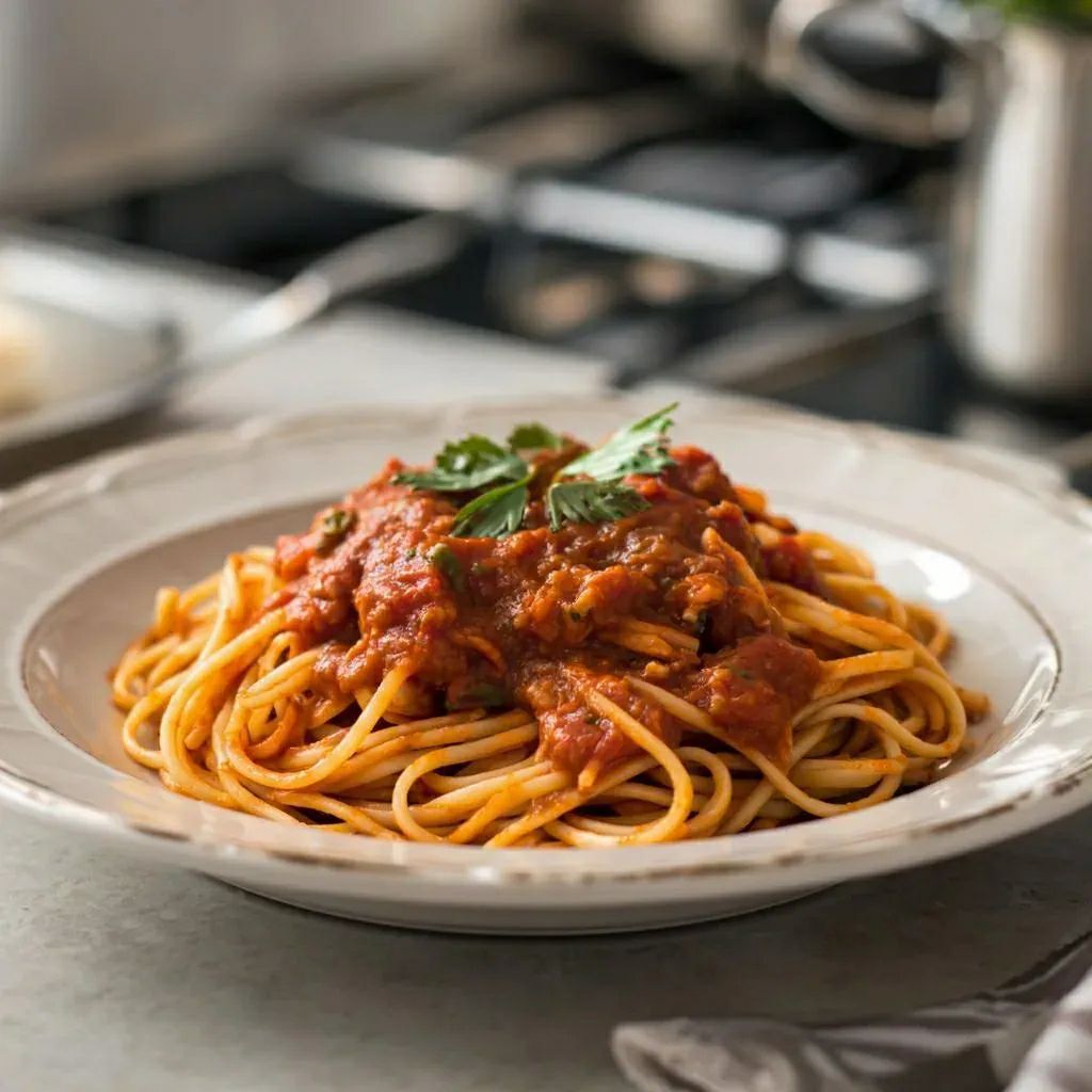 2. Обжарьте чеснок на оливковом масле, добавьте томатный соус.